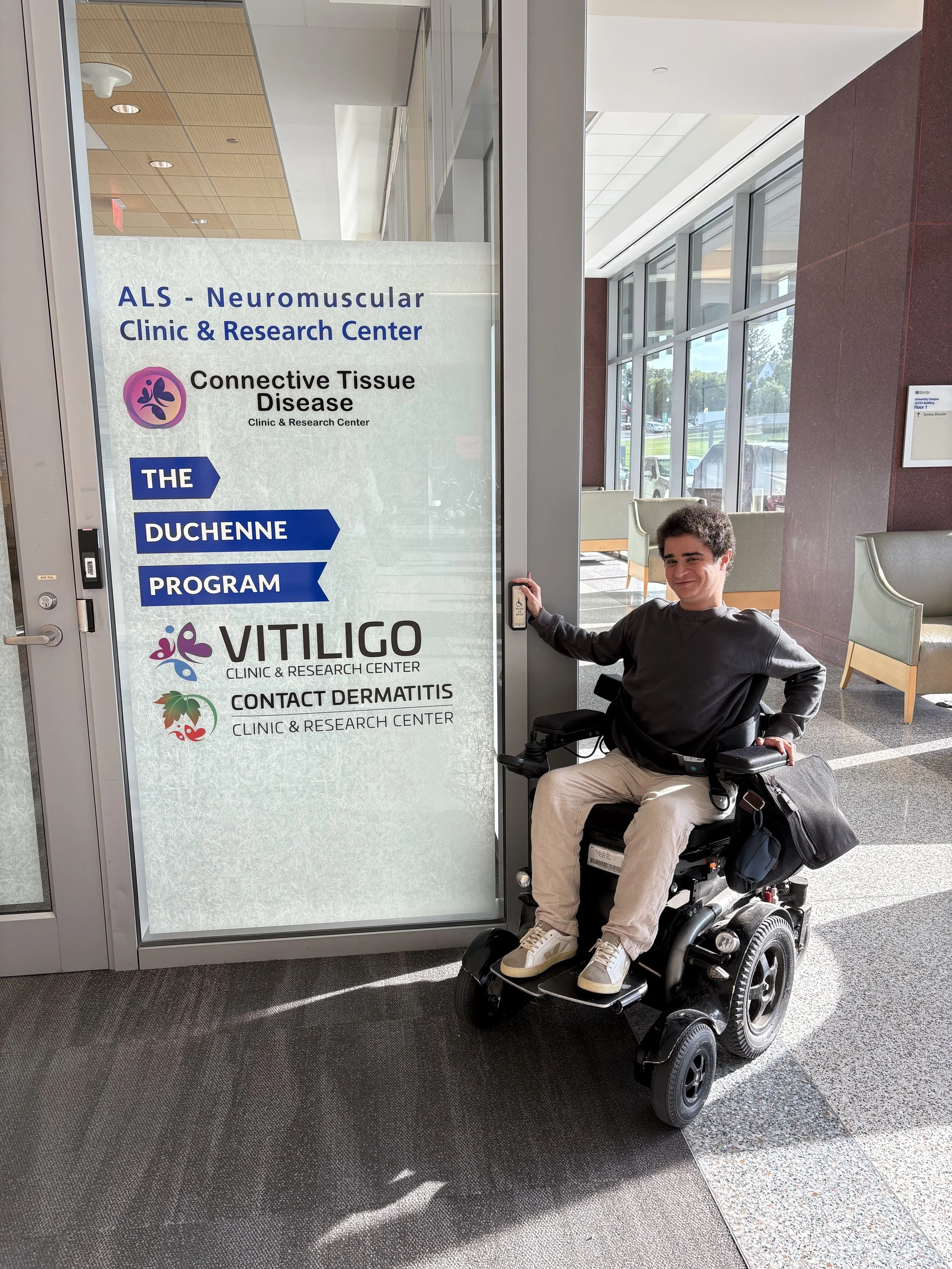 The visit also included a genetics discussion about delayed puberty, future fertility, and the chance of passing Duchenne on to my children. While rare, there are examples of individuals with Duchenne having children. I plan to have children one day and wanted to be fully aware of the genetics. My daughters would all be carriers of Duchenne but are very unlikely to develop the full condition. My sons would not inherit Duchenne from me. Understanding this helps me plan responsibly for the future.